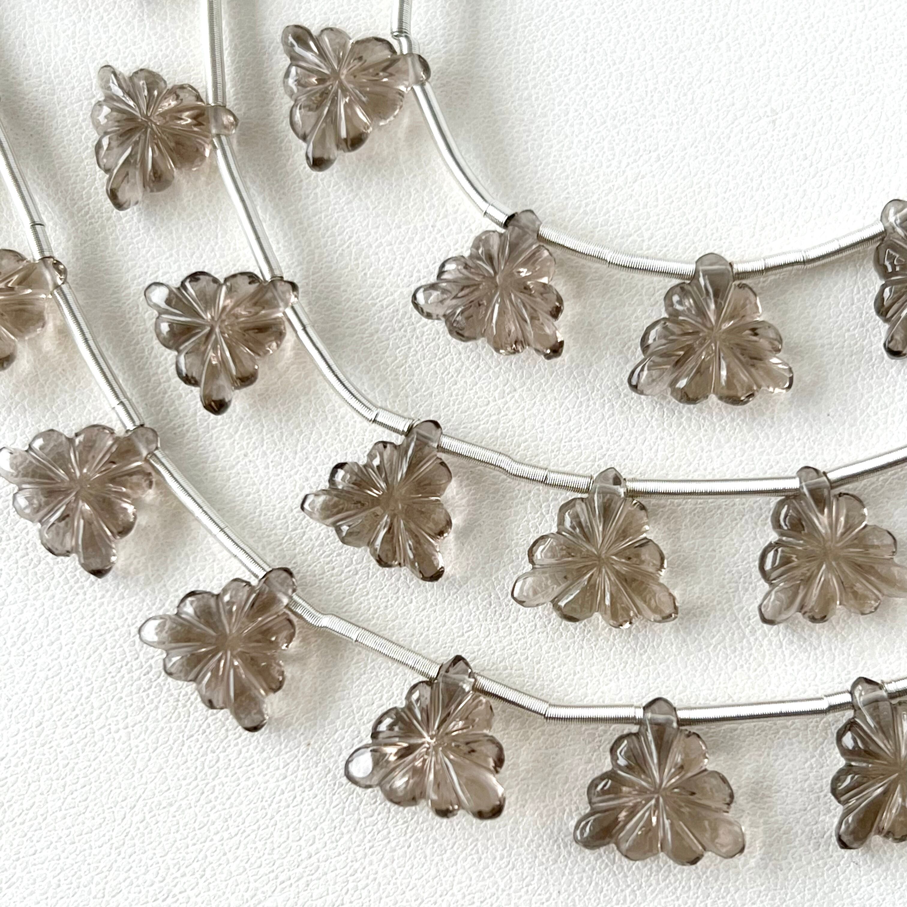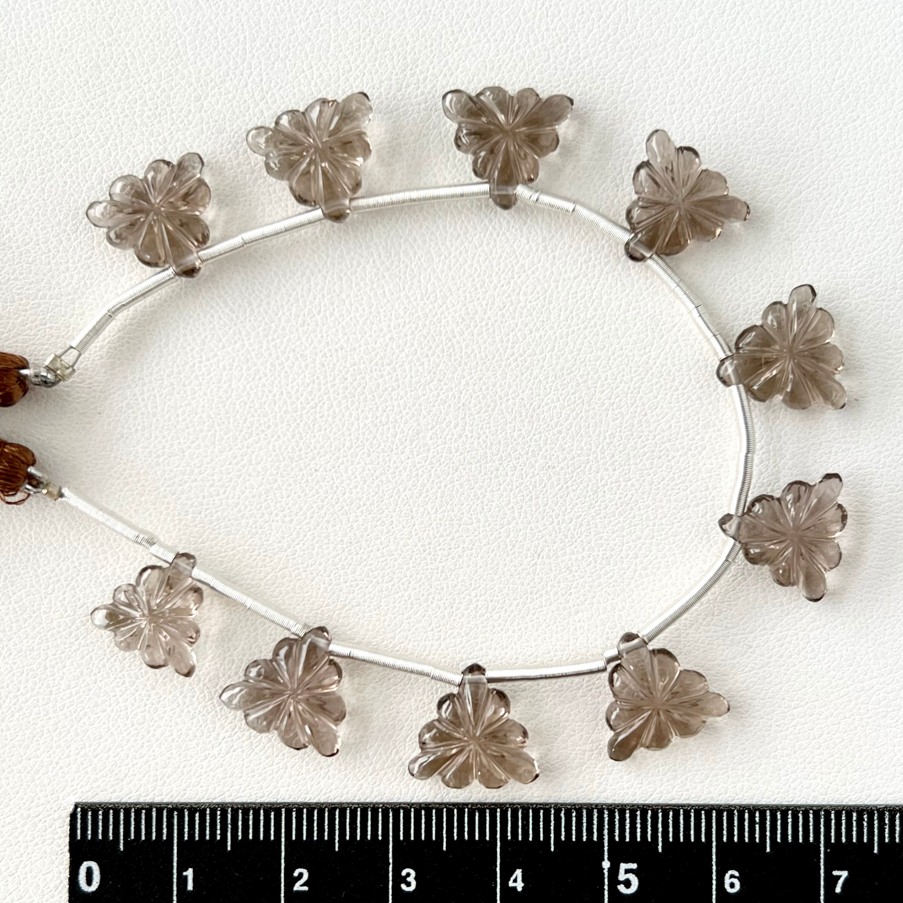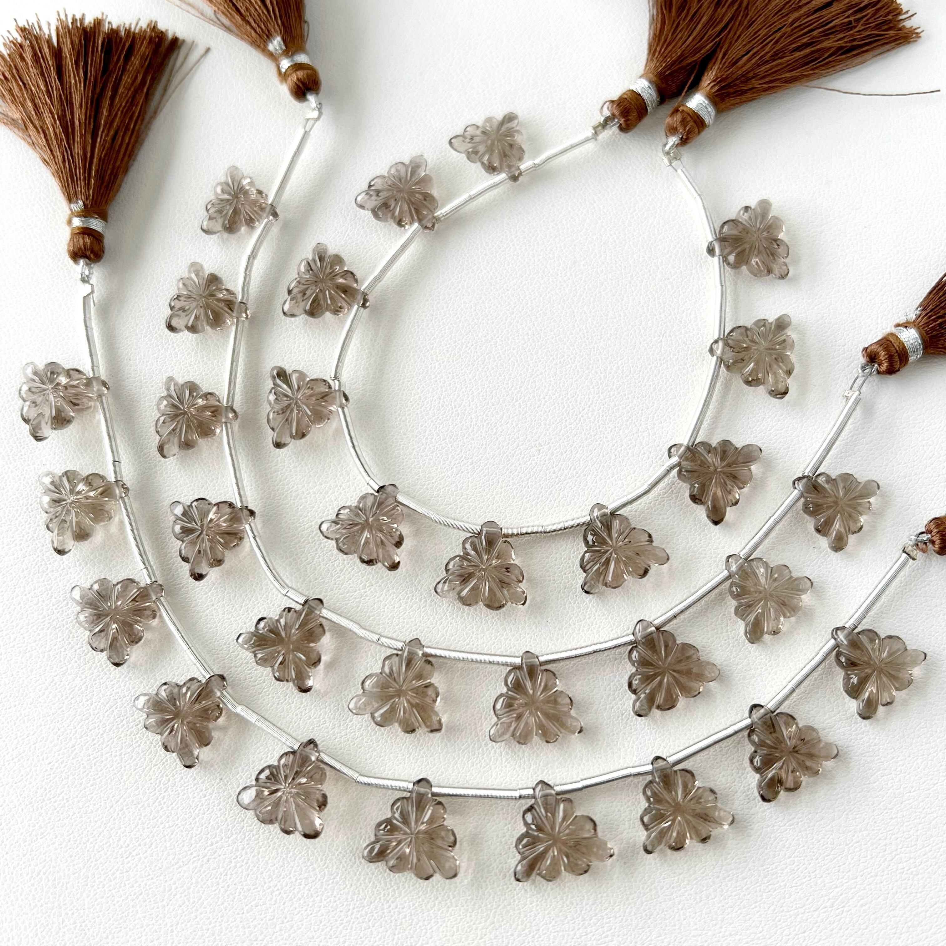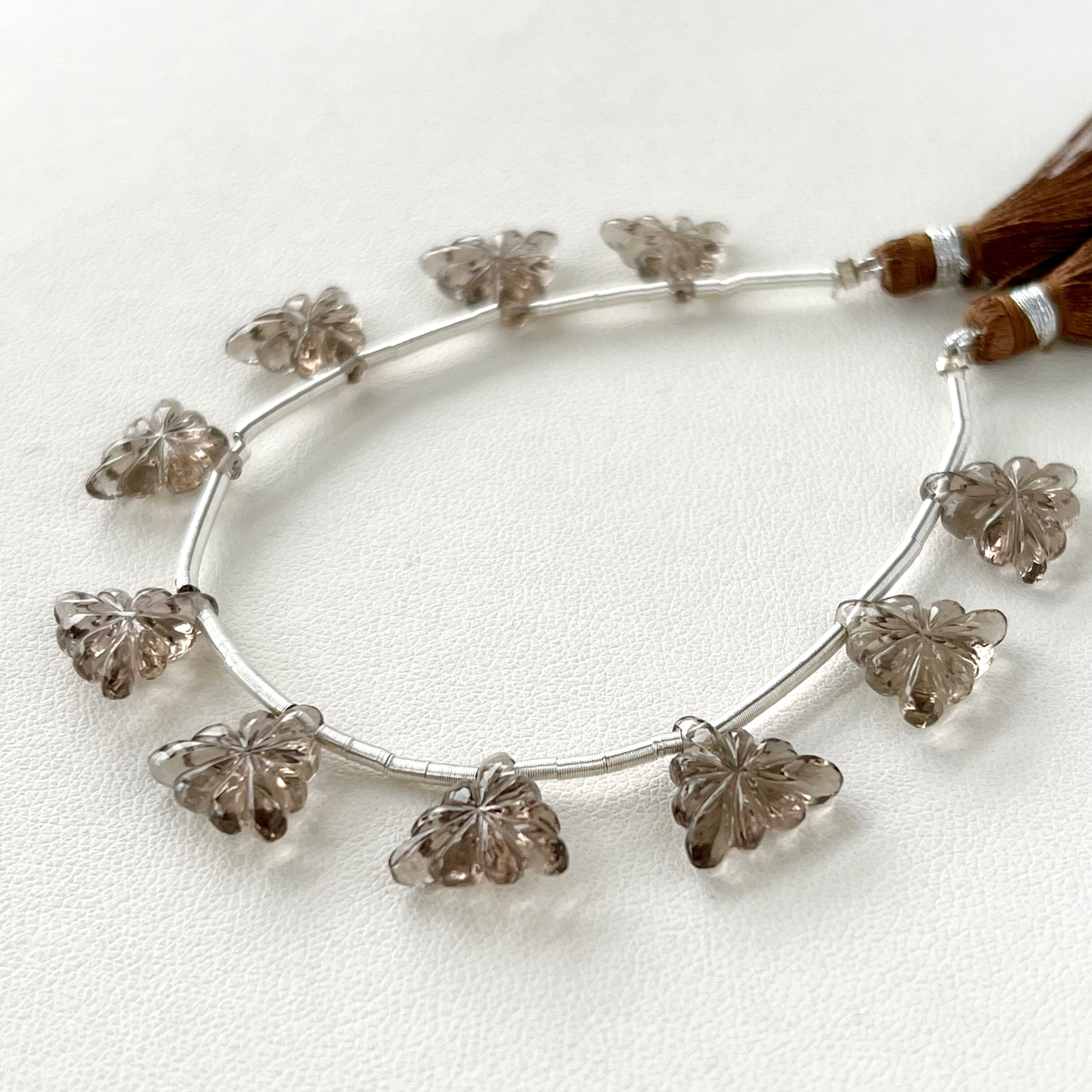 スモーキークォーツ トリリオン カービング 1連