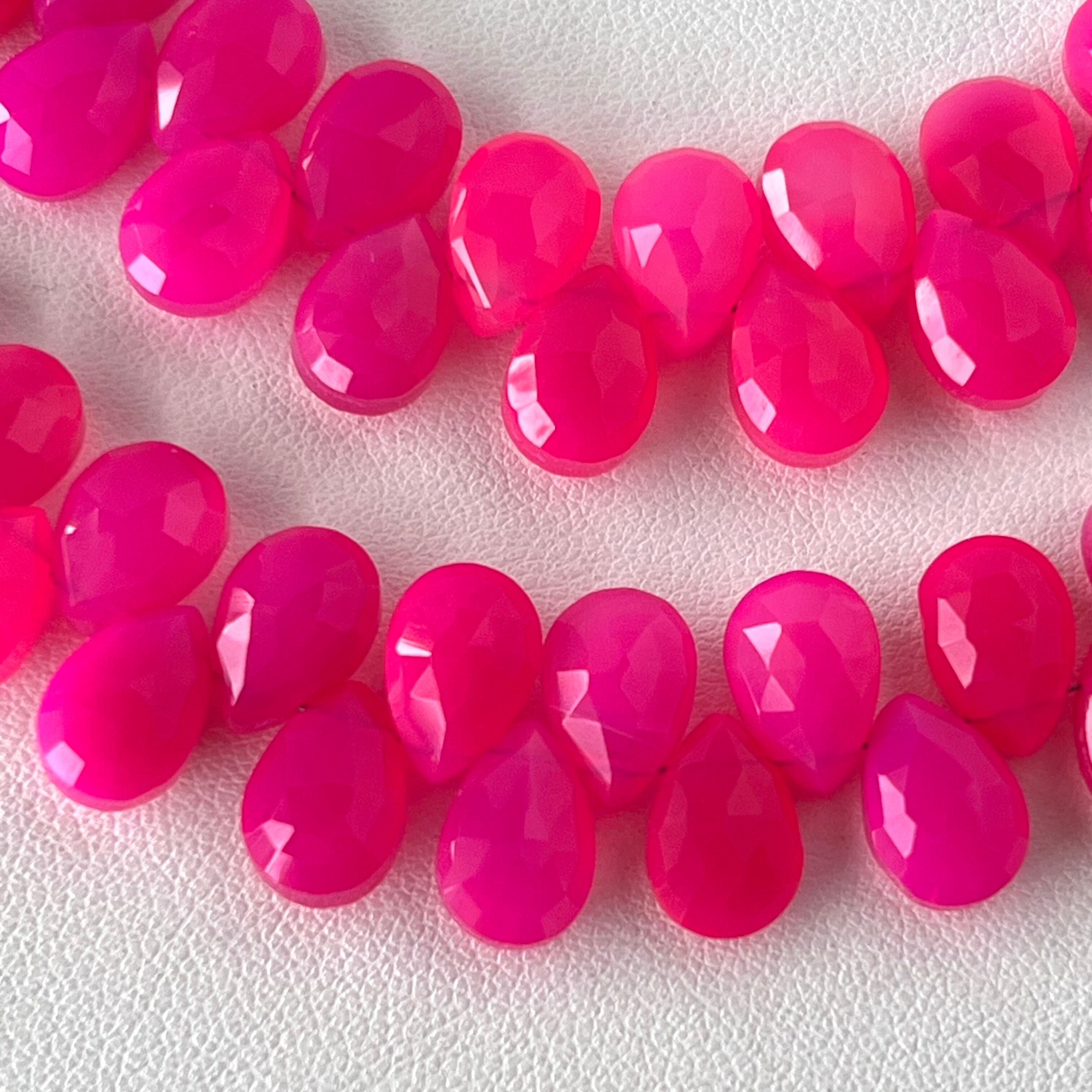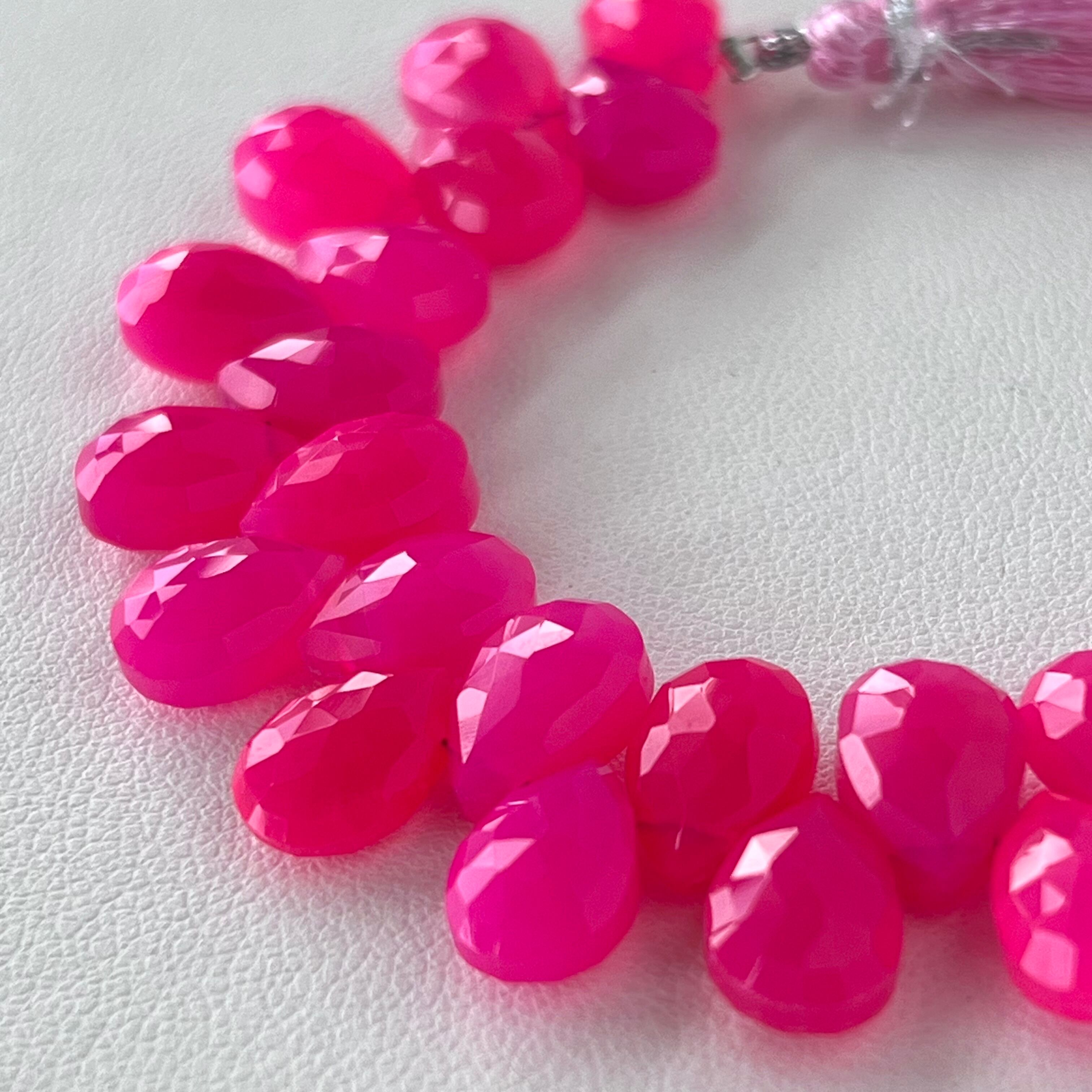 フューシャピンクカルセドニー ペアシェイプカット 一連