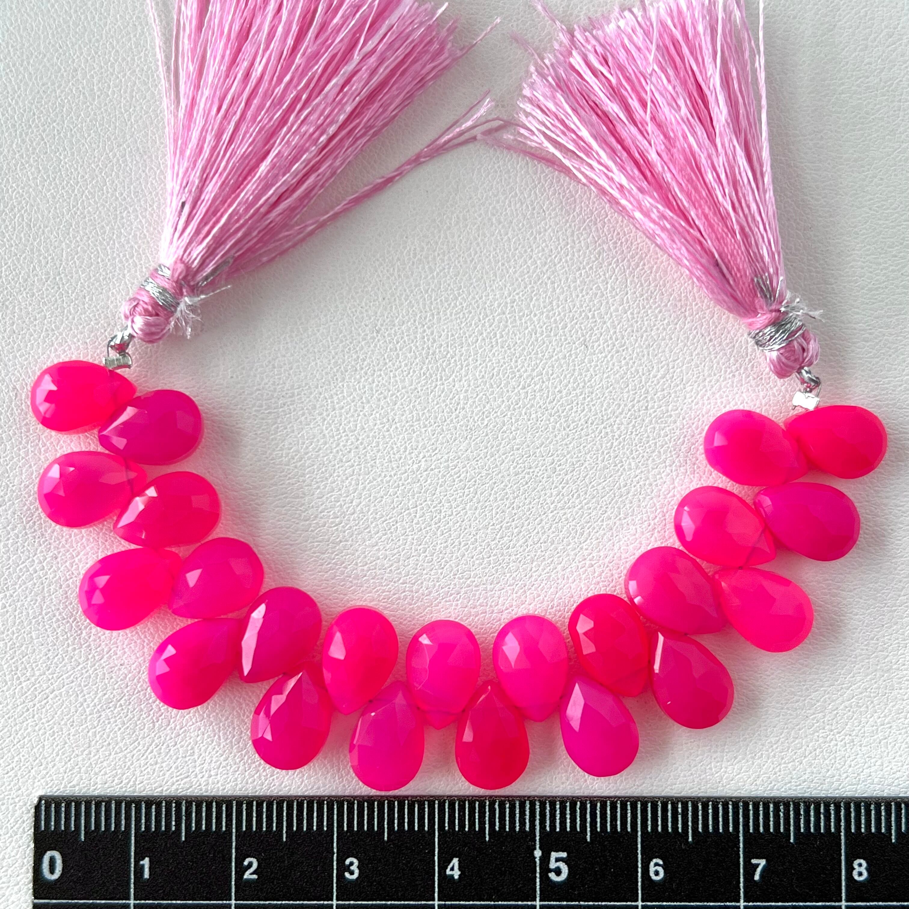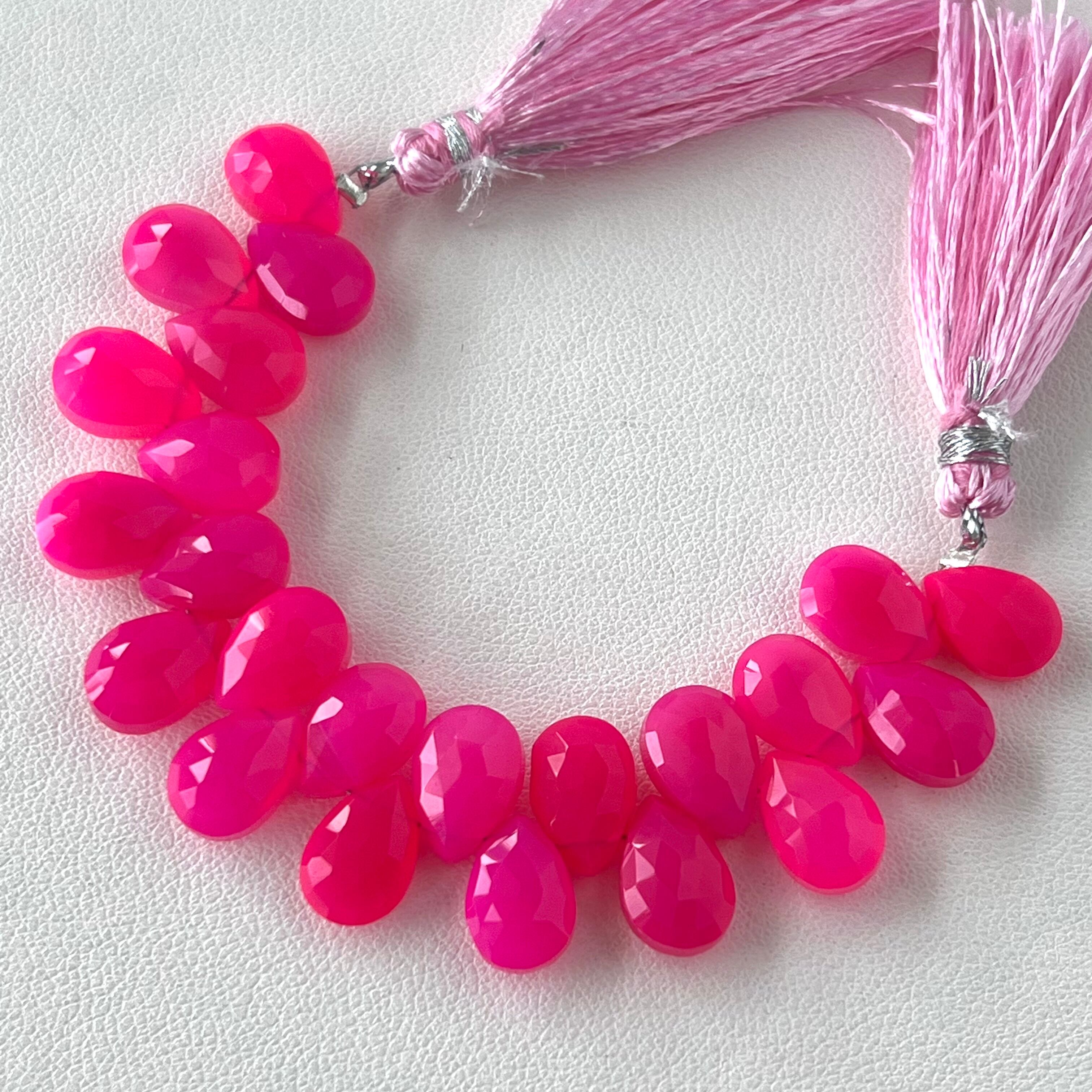 フューシャピンクカルセドニー ペアシェイプカット 一連 2970円